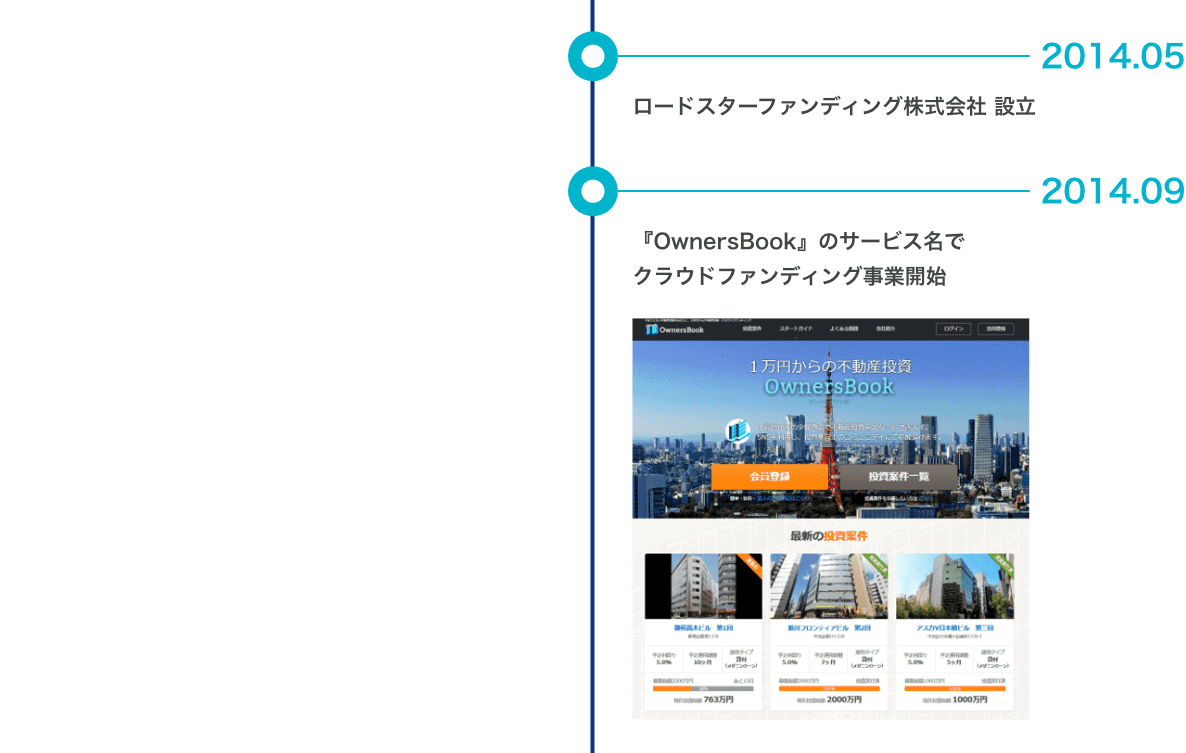 次の転機は、ニューヨーク証券取引所に上場していたRenrenグループから10億円もの出資を受けたこと。これを機にクラウドファンディング事業が立ち上がり、日本初の不動産特化型クラウドファンディング『OwnersBook(オーナーズブック)』が誕生しました。