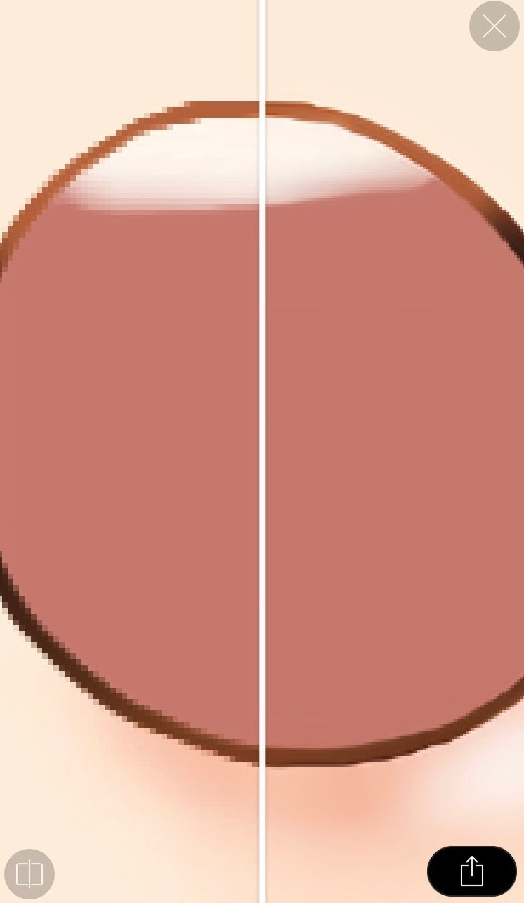 「AI超解像度機能」は、ディープラーニングの技術を駆使し、自身が描いたイラスト作品の高画質化をワンタップで実現します。保存された画像の画質とサイズを2倍に向上させることができるこの機能では、仕切りバーを使って適用前後の解像度の比較を容易に行うことができます。
