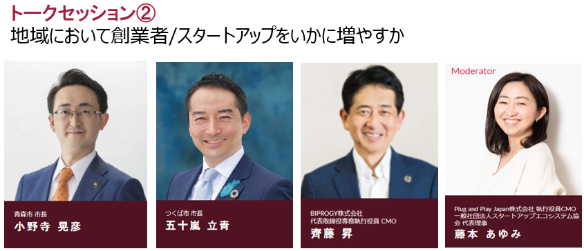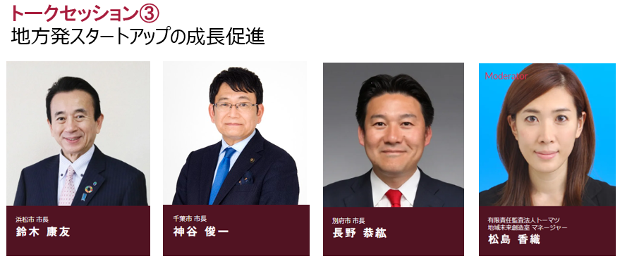 また、自治体の首長(青森市・つくば市・千葉市・浜松市・別府市・熊本市・福岡市)によるトークセッションを開催します。