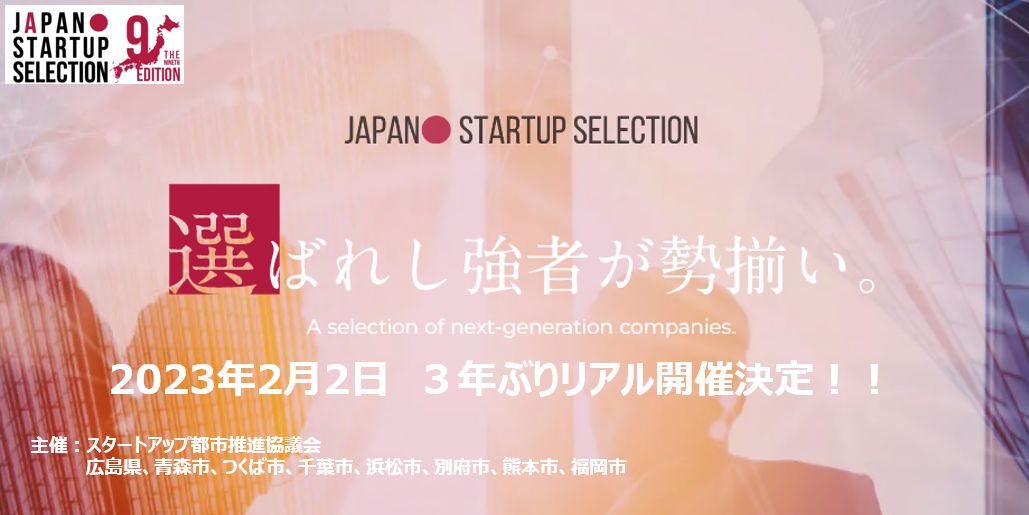 【全国の選ばれしスタートアップが集結!】マッチングイベント「JAPAN STARTUP SELECTION the 9th Edition」を3年ぶりリアル開催!