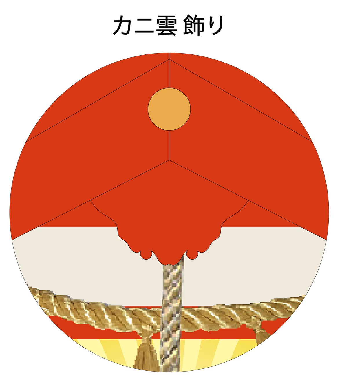 《カニ雲飾り》祠には「ほぼカニ様」の形をした「カニ雲」の飾りがあしらわれています。