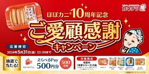 2024年3月1日から、10周年記念として「ほぼ10%増量したほぼカニ®の期間限定販売」やカネテツデリカフーズのイメージキャラクター「てっちゃんのLINEスタンプ無料配信」など様々な企画を実施しており、