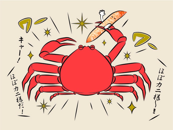 そこで出会った1本のほぼカニ®と1匹のズワイガニ。おいしさとしあわせを届けたいという思いが実を結び、固い絆で結ばれた1本と1匹はいつしか ほぼカニ様 と呼ばれるようになりました。