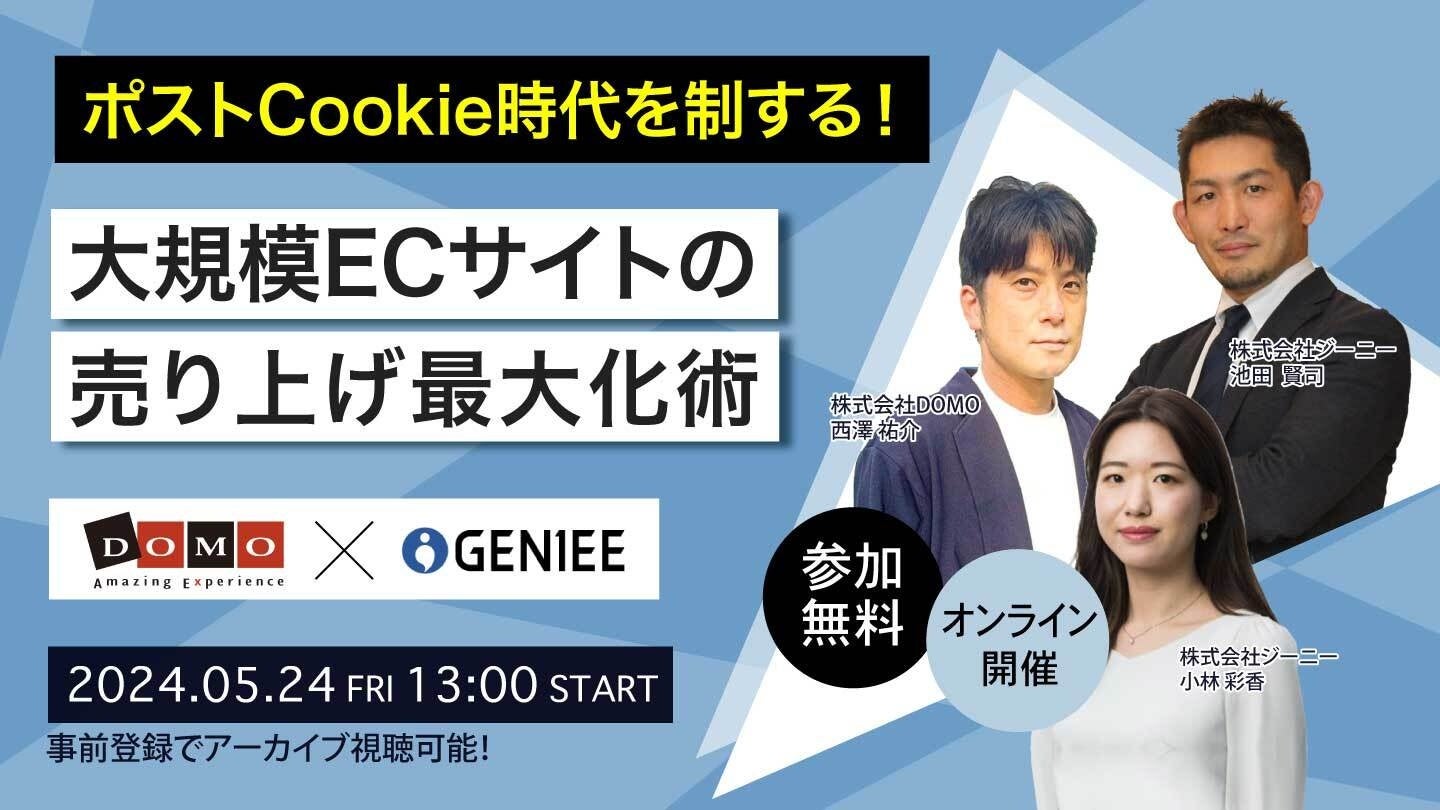 【無料セミナー】「ポストCookie時代を制する!大規模ECサイトの売り上げ最大化術」を株式会社ドーモは株式会社ジーニーと共同開催します。