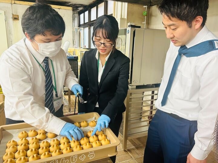 出来立てだからこそ味わえる”サック”とした生地と餡の”みずみずしさ”。約40年ぶりの大卒新入社員8名が運営。