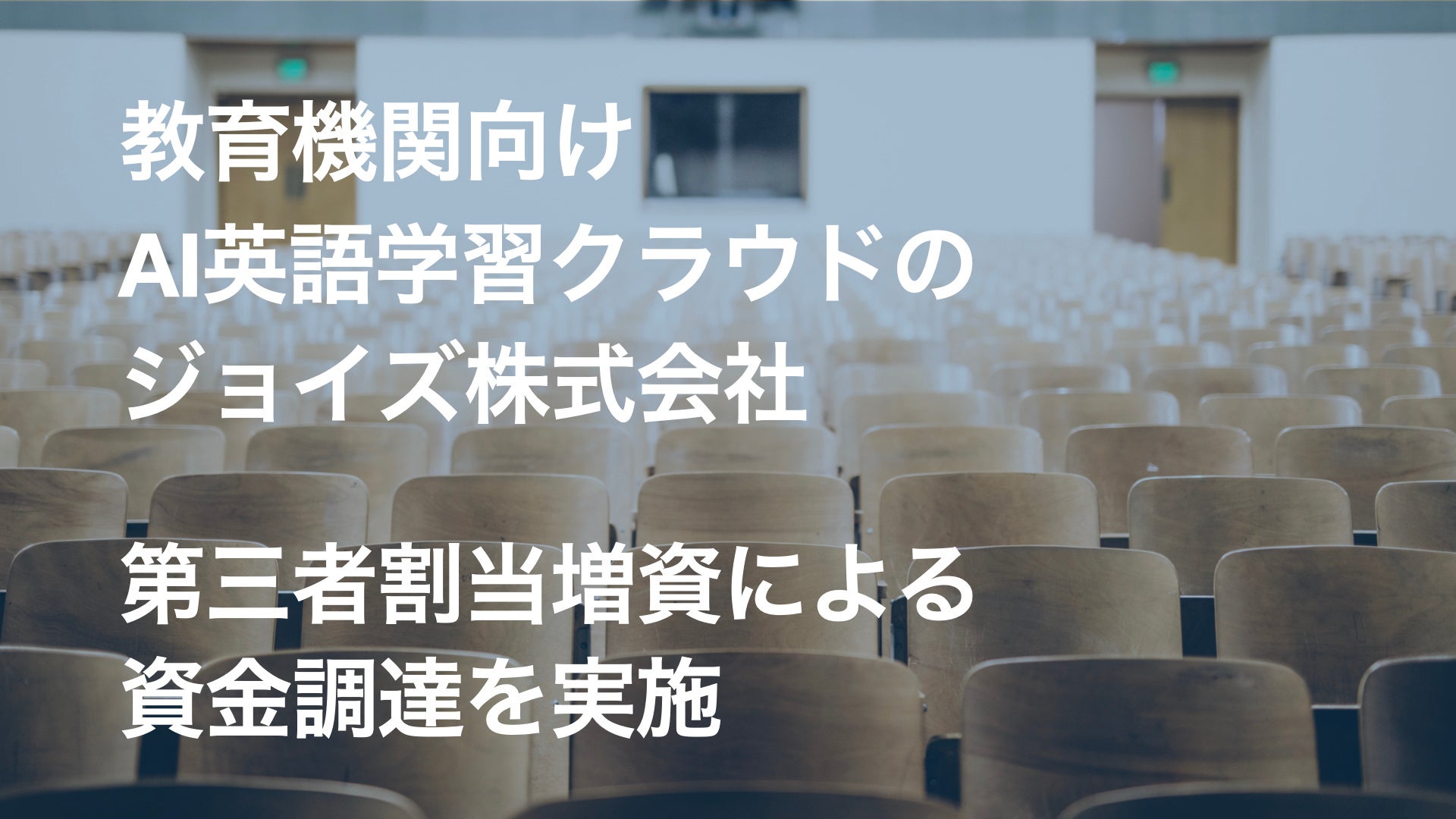 教育機関向けAI英語学習クラウドのジョイズ、第三者割当増資による資金調達を実施。