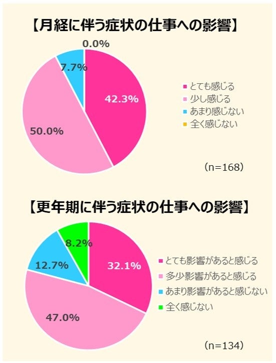 本導入に先立ち、女性従業員に女性の健康課題に関する実態調査※3を実施しました。回答した168人のうち、月経に伴う不調がある人に仕事への影響があるか聞いたところ、92.3%の人があると回答し、また40歳以上で更年期症状がある人は79.1%の人が影響を感じていることが分かりました。このような健康課題の改善をサポートする施策のひとつとして『ルナルナ オフィス』が導入されました。