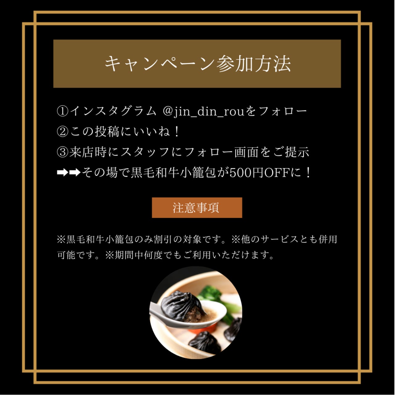 ③来店時にスタッフにフォロー画面をご提示。その場で黒毛和牛小籠包が500円OFFに!