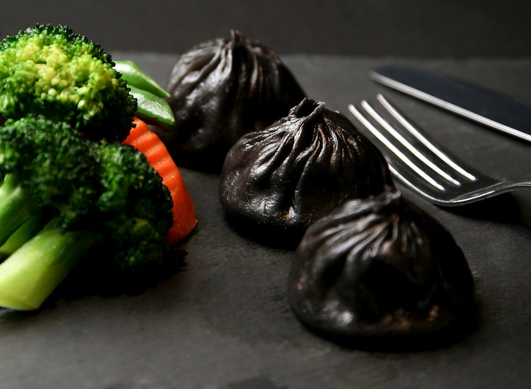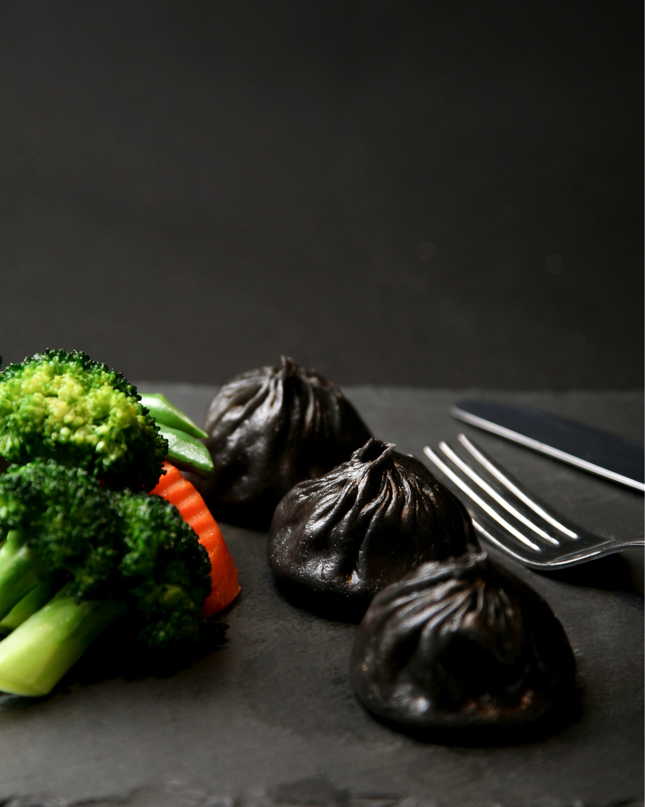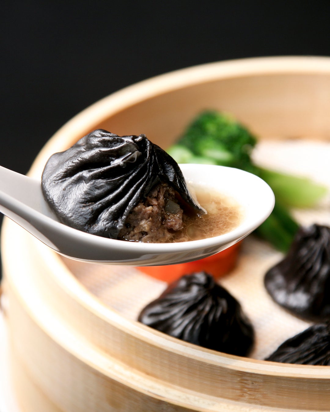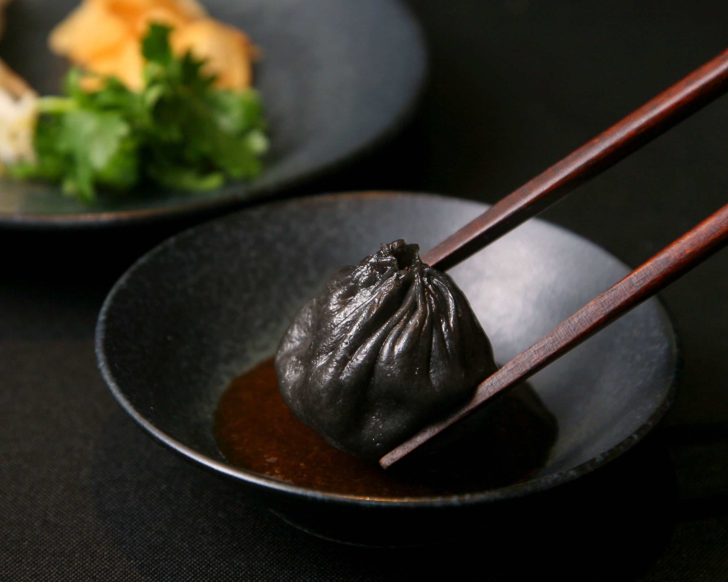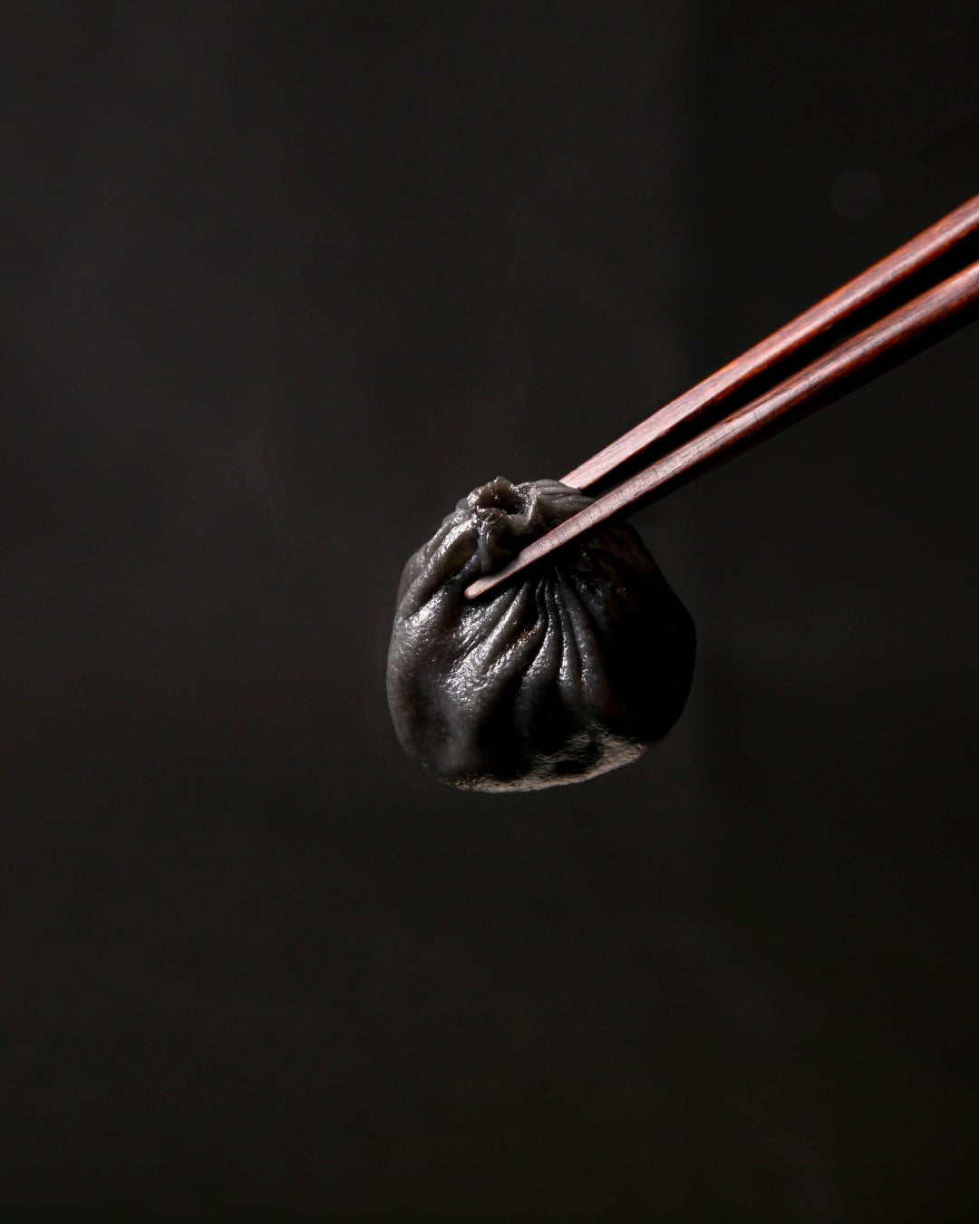 インパクトと高級感のある黒い皮で、矢澤ミートのハンバーグで使用している黒毛和牛小籠包を包みました。
