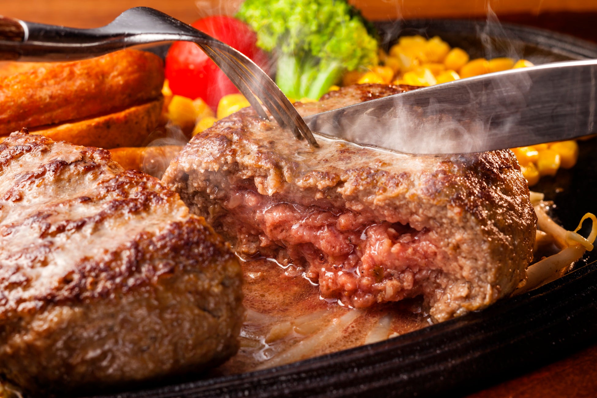 ステーキ・ハンバーグは、ヤザワミートの熟練の肉の目利き職人が、日本全国の最高品質の黒毛和牛の中からさらに独自の厳しい基準と自らの目で吟味し、部位ごとにこだわり抜いて仕入れた至高の黒毛和牛を使用しております。仕入れにこだわり抜いた黒毛和牛は私達の誇りです。