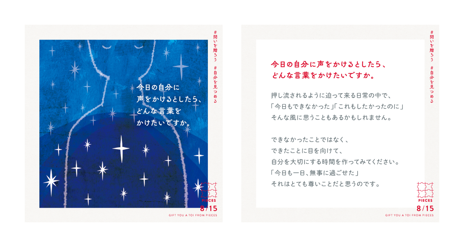 そんな思いから、PIECESでは2021年より「#問いを贈ろう」キャンペーンを実施しています。
