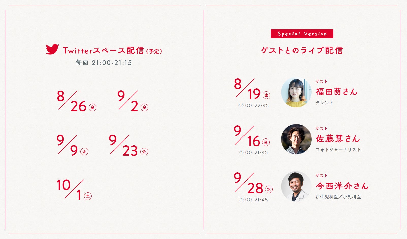 期間中はオンラインイベント「問いのじかん」を開催。今週の問いや参加者からの回答などをtwitterスペースで紹介するほか、スペシャルバージョンでは代表の小澤いぶきがゲストとともに「問い」を深め、考えます。