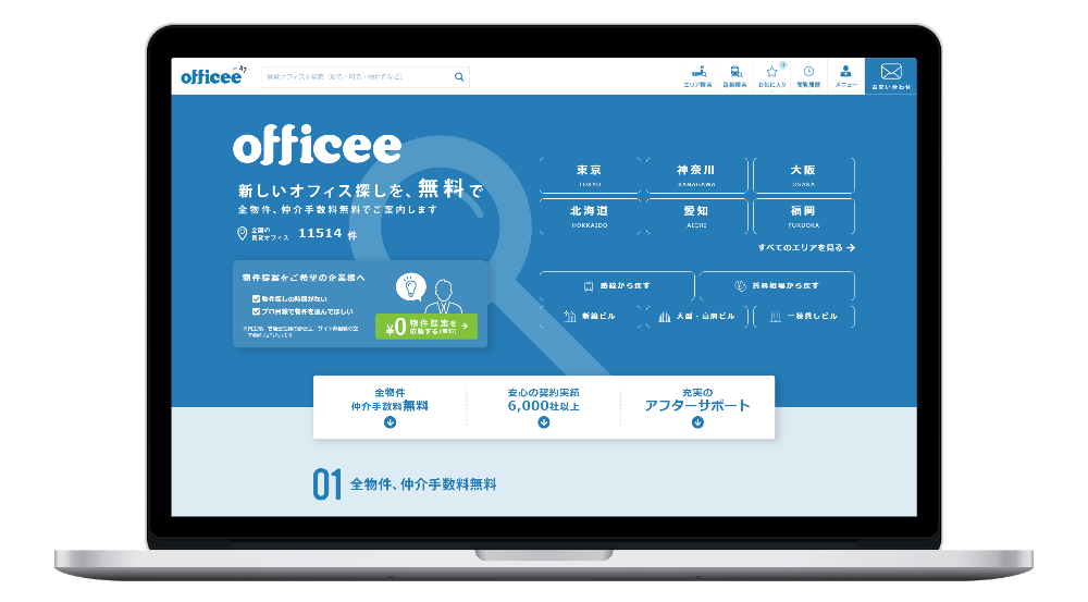 仲介手数料無料のオフィス仲介「officee」、利用企業が累計7,000社を突破