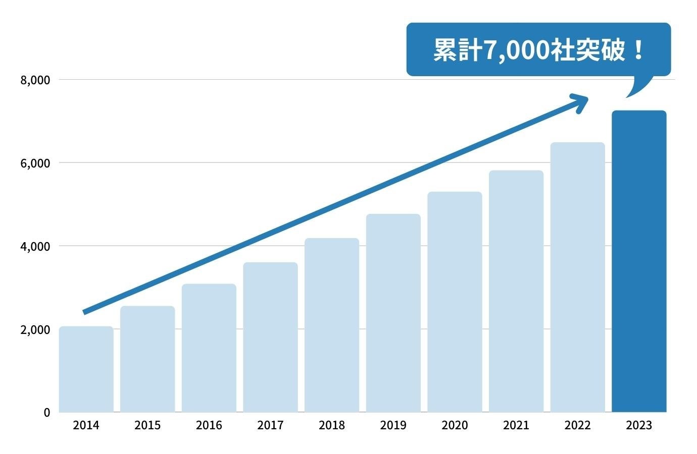コロナ禍に突入したばかりの2020年は、先行きが分からず移転を控える企業やオフィスを解約する企業が増え、一時期は「オフィス不要論」が飛び交いました。しかし、2021年以降は出社とリモートを組み合わせたハイブリッドワークを導入する企業が増加。オフィスの適正面積を見直す動きが加速した結果、多くのお客さまからオフィス移転のご相談をいただき、利用企業が累計7,000社を突破しました。