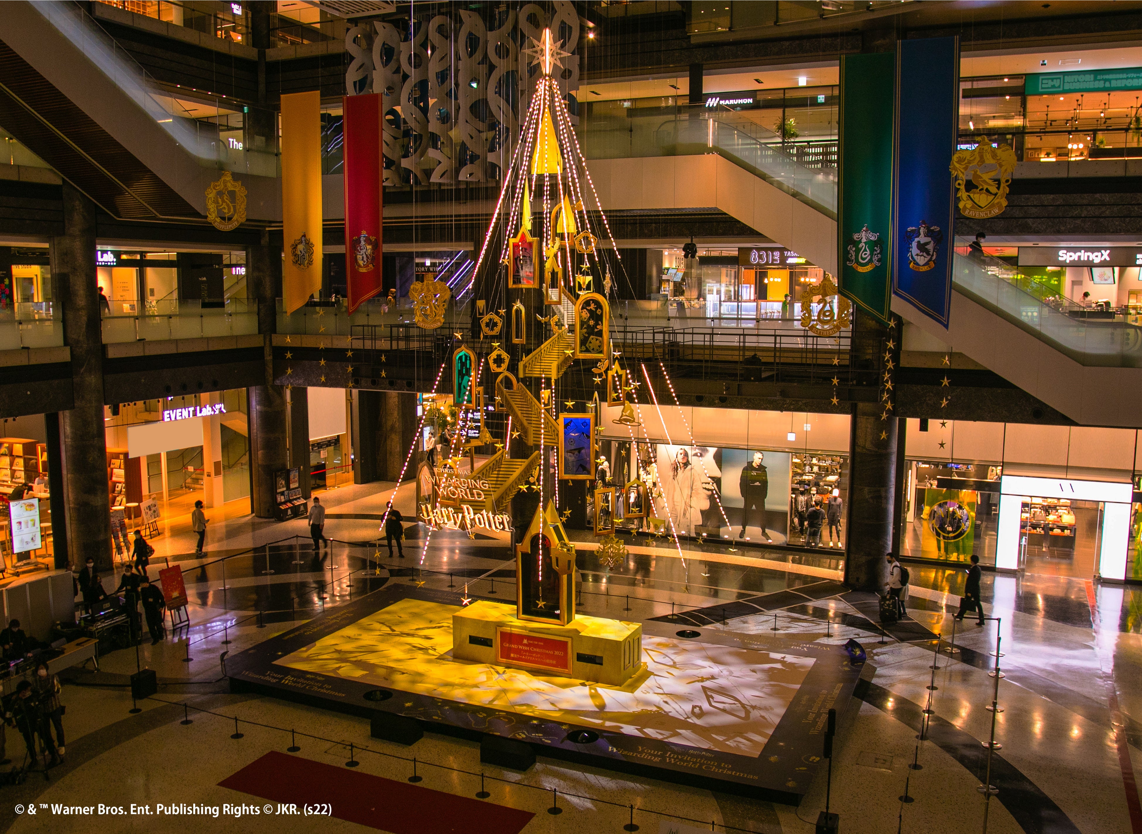 「ハリー・ポッター」魔法ワールドの物語に登場するモチーフが各所に散りばめられた約13mのメインクリスマスツリー『Floating Magic Tree 浮遊する魔法の樹』がナレッジプラザに登場。