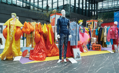 1,000人以上の来街者と共に創り上げた世界に一つだけの「希望の翼」オブジェと大阪文化服装学院の学生が「WISH(願い・希望)」をテーマにしたオリジナル衣装をお披露目