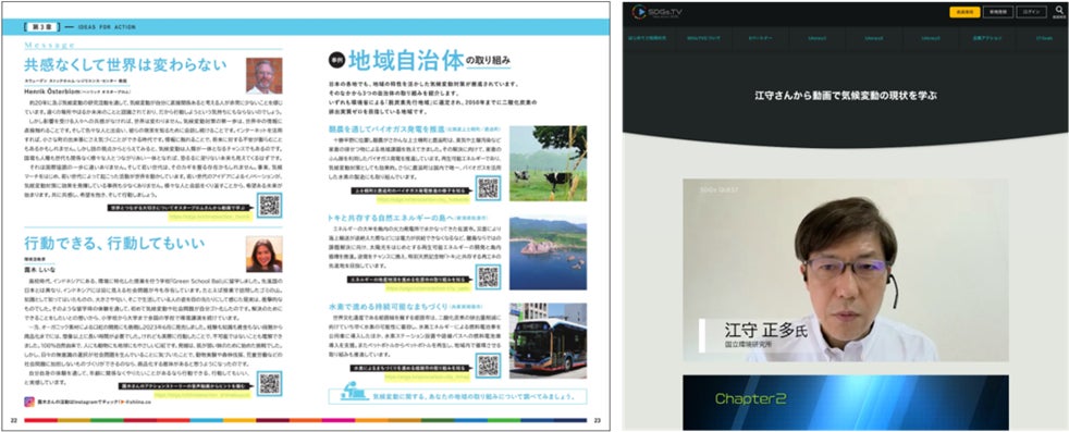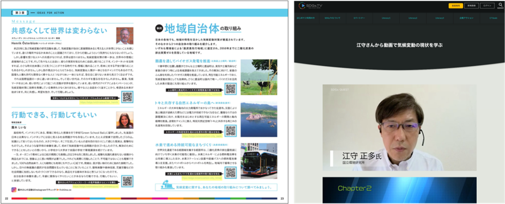 ●第一人者からのメッセージ:国連広報センターや科学者(東京大学未来ビジョン研究所教授、ストックホルム・レジリエンス・センター教授)、環境活動家からのメッセージを、テキストやインタビュー動画で紹介。