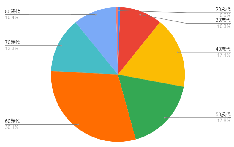 日本税理士会連合会実施の調査によると、60歳代の人数が約3割と最も多く、
