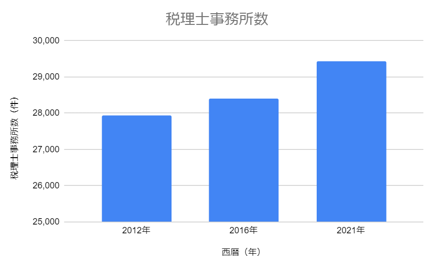 税理士の需要は増える一方で、税理士試験の合格者数は約半分に減少している。