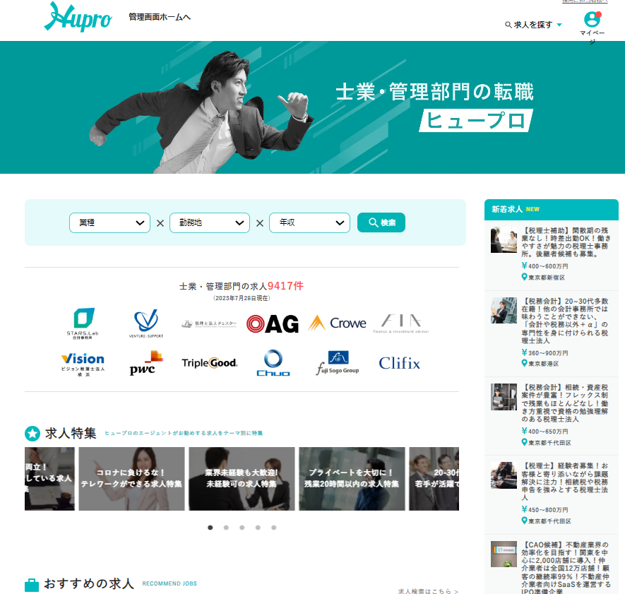 ▷士業・管理部門特化型の転職支援サービス『ヒュープロ』