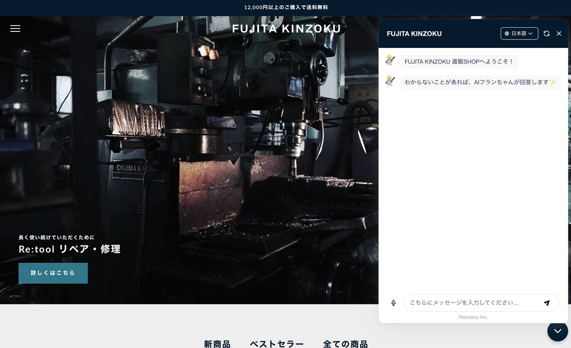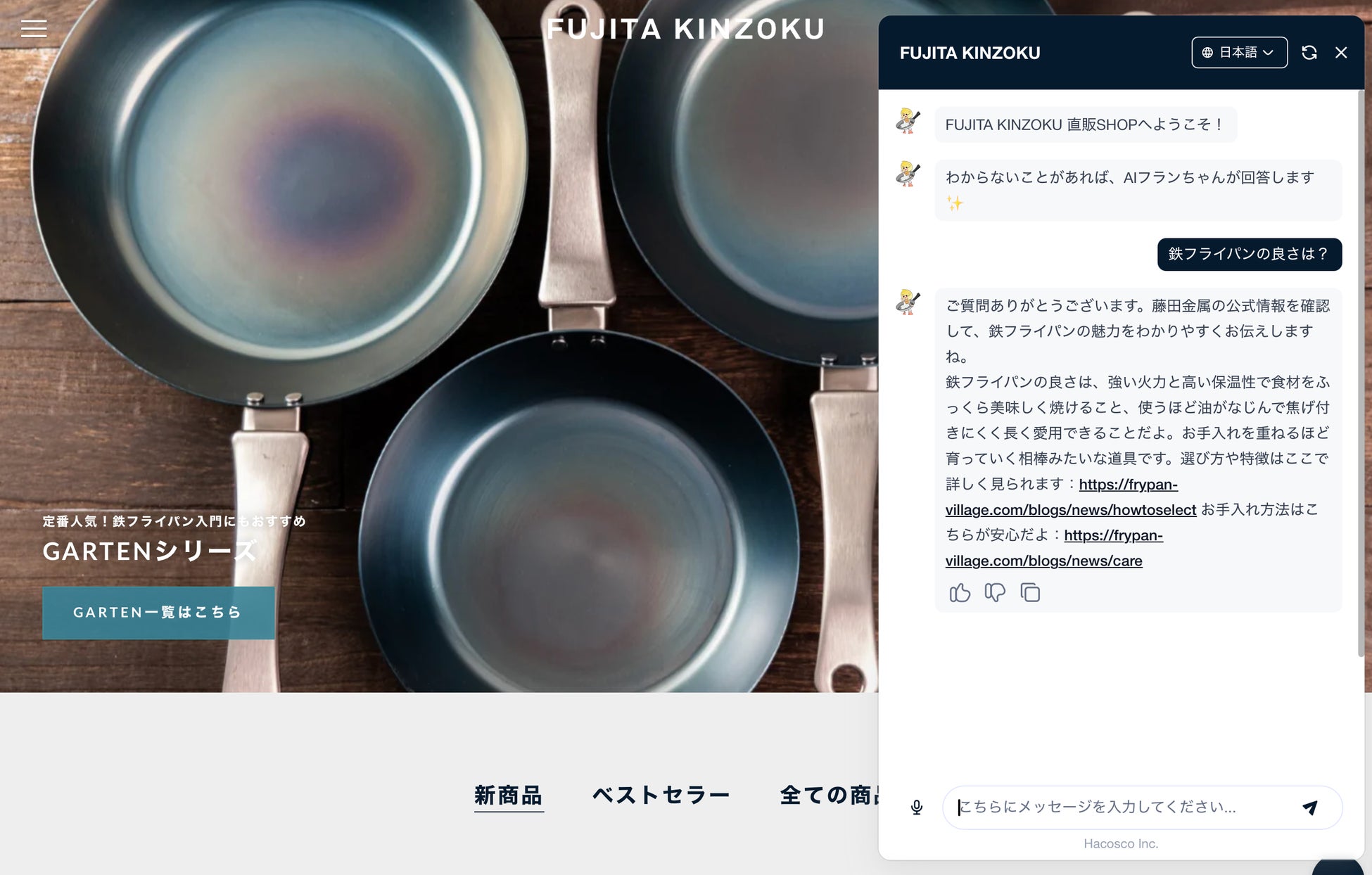公式ホームページ、公式オンラインサイトにて、AIチャットボットを導入しました。