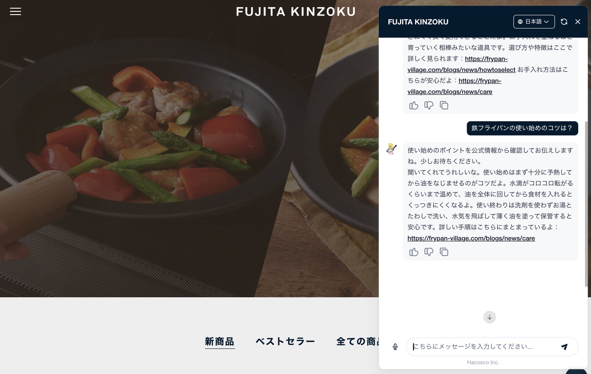【バーチャル工場‼︎ AI社員を採用‼︎】-導入後初の成果報告-いつでも、どこでも工場見学・鉄フライパンについて多言語でお問い合わせ可能‼︎