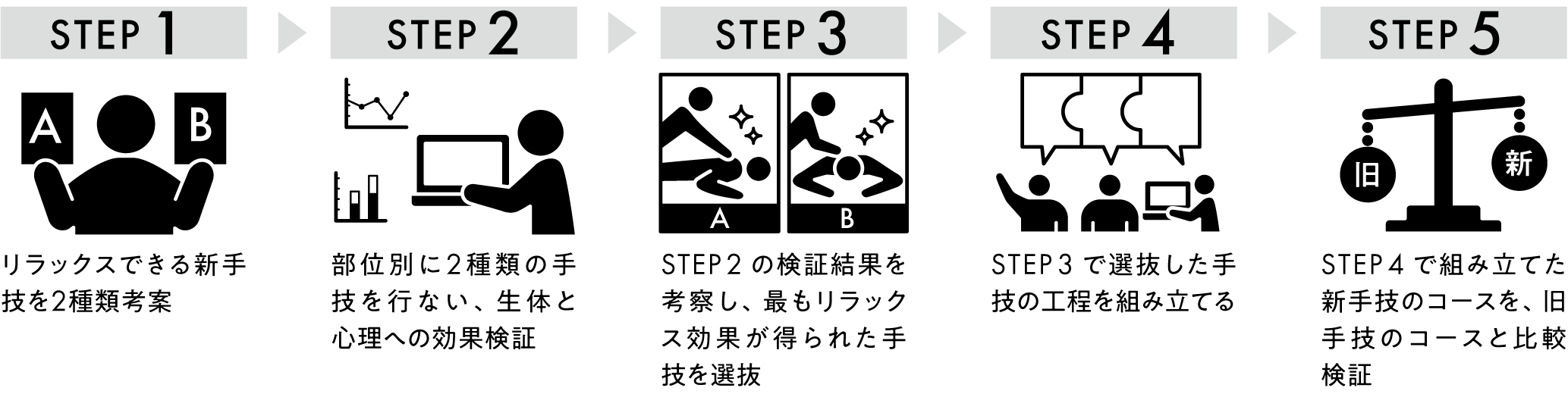 STEP3: STEP2の検証結果を考察し、最もリラックス効果が得られた新手技を選抜*1