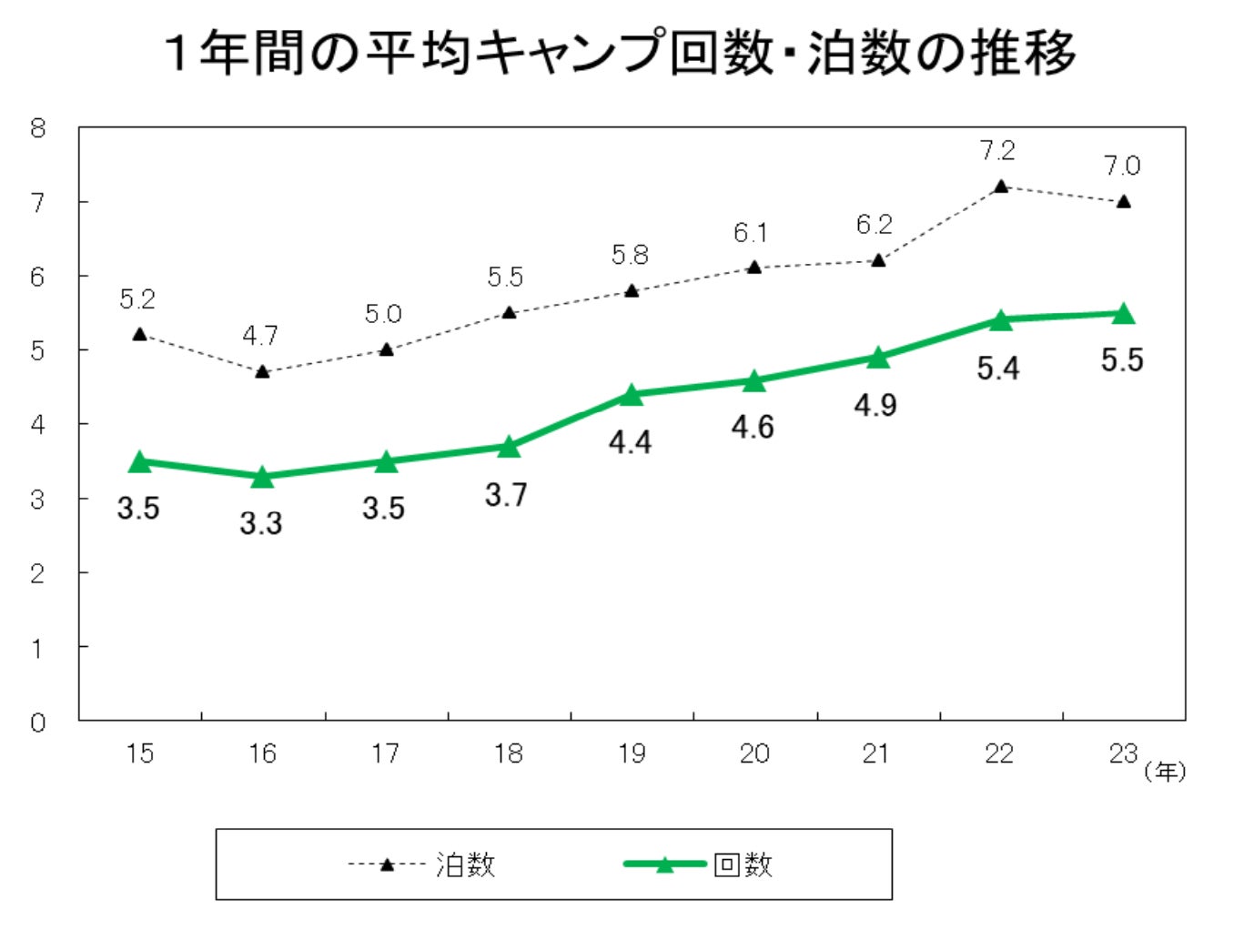 ●キャンプの回数はさらに上昇し年間5.5回となった。