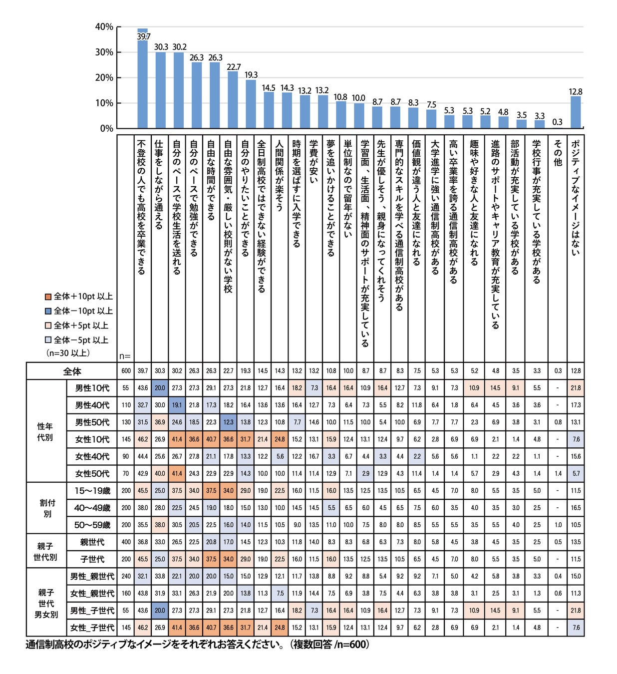 Q4-1. 通信制高校のポジティブなイメージをそれぞれお答えください。(複数回答/n=600)