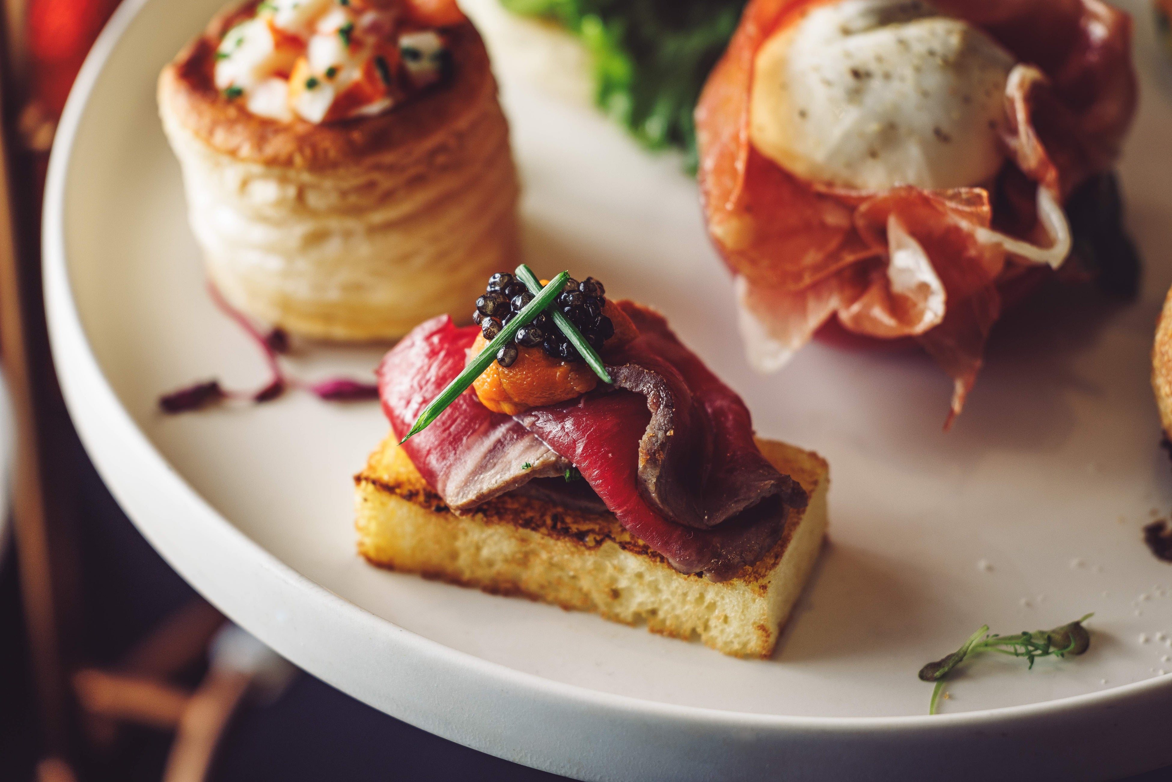 ・USDA PRIME BEEFとウニ、キャビアのオープンサンド