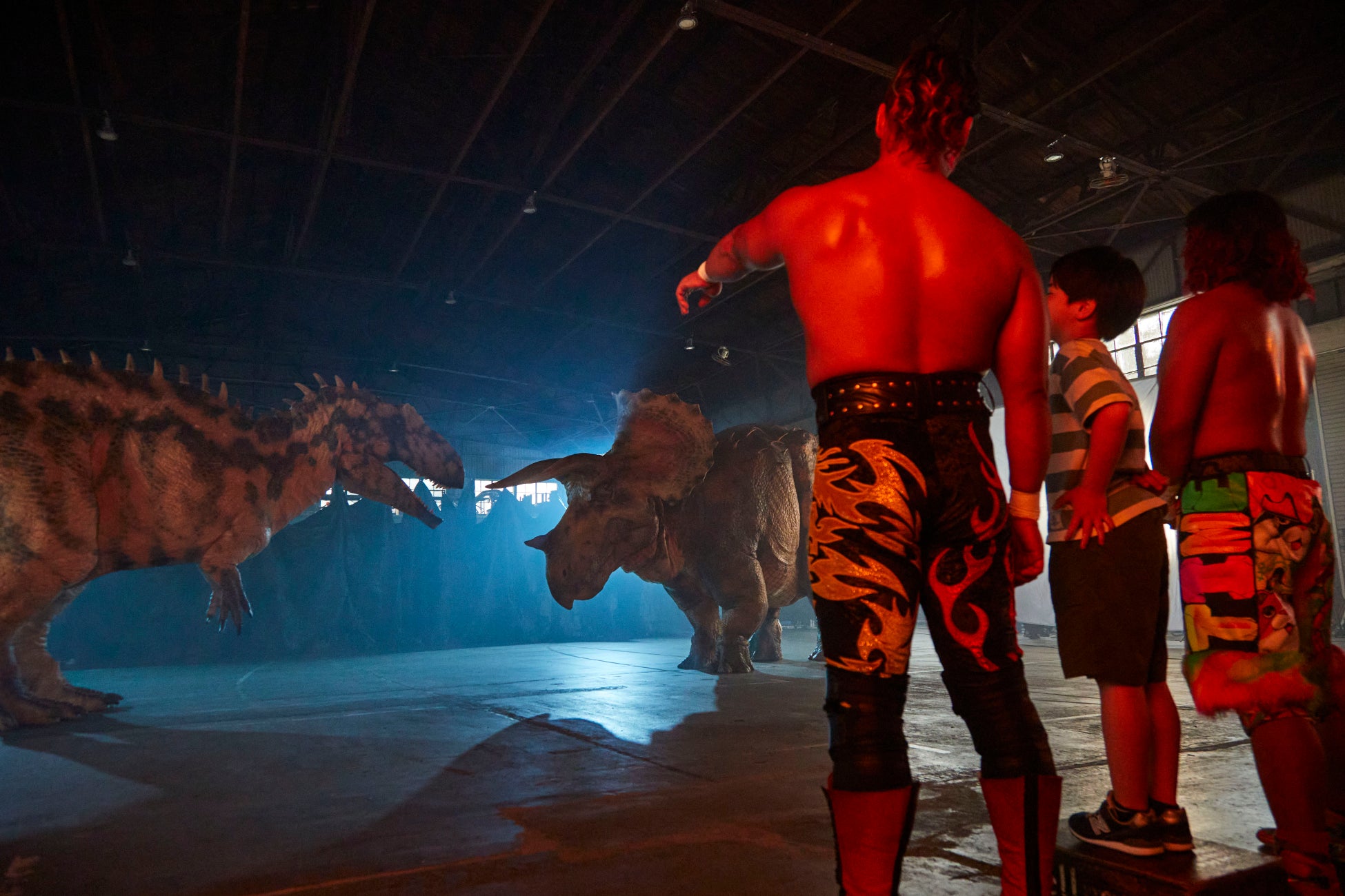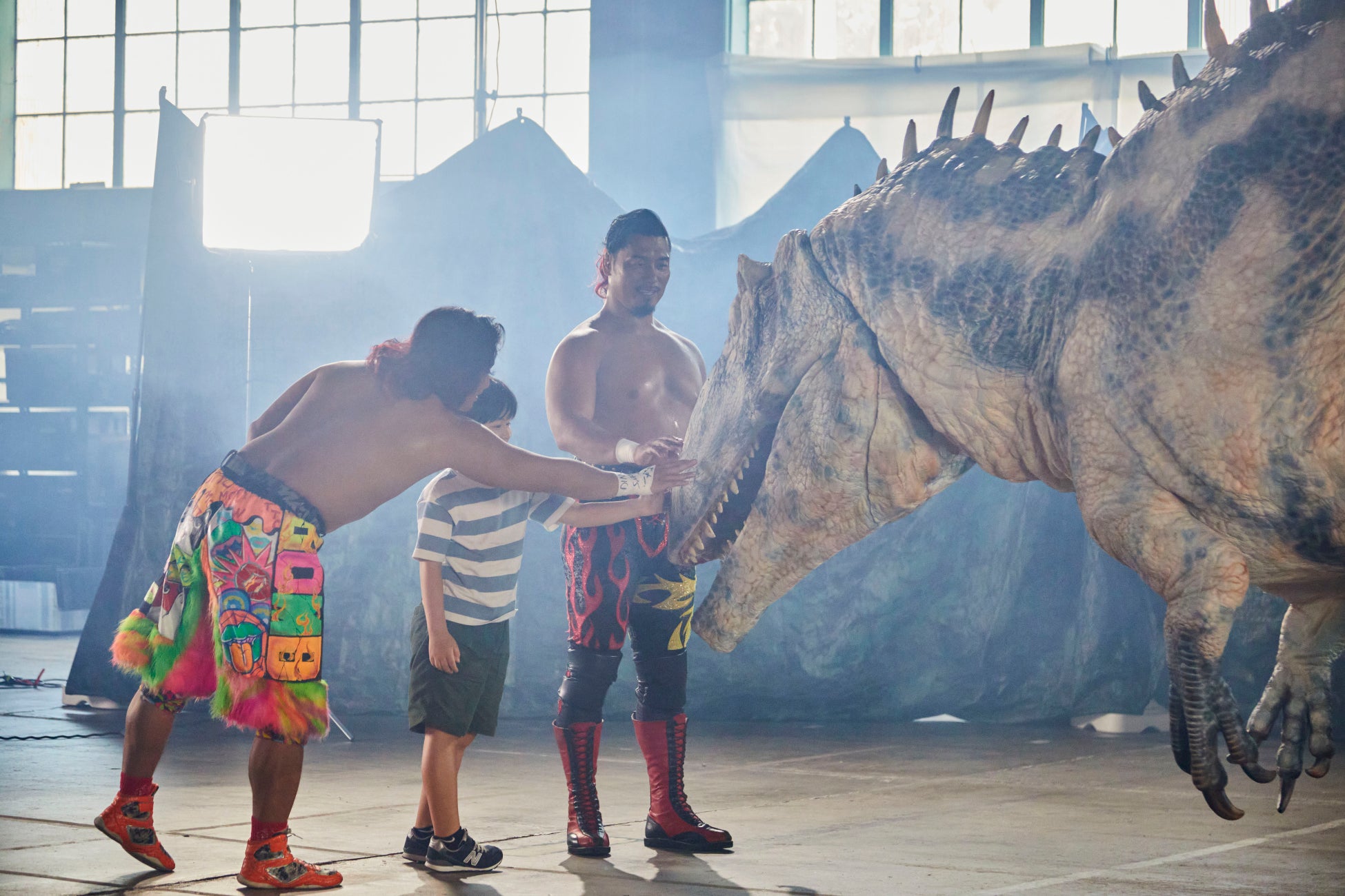 これまで数々の強敵と戦ってきた鷹木信悟選手と高橋ヒロム選手、初となる規格外の恐竜にどう立ち向かうのか。過去最大級のイベントとなる「DINO SAFARI GIGANT」。その迫力をイベントのサポーター役でもあるプロレスラーのお二人に恐竜と対峙してもらうことで表現しました。また、今回パパ役に初挑戦した鷹木選手、後輩役の高橋選手の演技にご注目ください。撮影でもリアルな恐竜の迫力に、童心に戻って興奮しっぱなしでした。