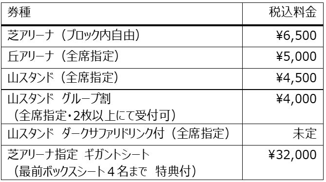※芝アリーナ、丘アリーナ席は特典付きとなります。