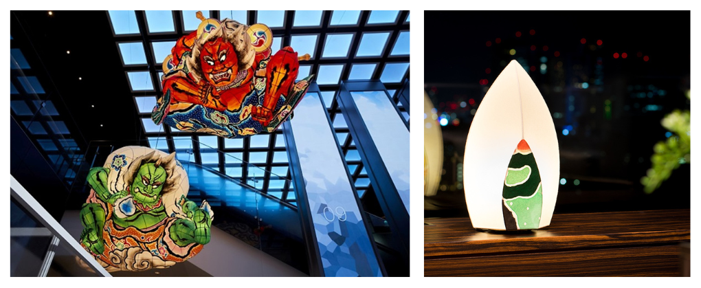 ねぶた大賞や第30回NHK東北放送文化賞など多数の賞を受賞されているねぶた師竹浪比呂央*が手掛けたねぶたの一部で作られたねぶたの彩色和紙で作られた照明「KAKERA」やミニねぶた等を各所へあしらい青森ねぶた祭の世界観を表現。ゆったりとくつろぎながら観覧できる空間をご用意しました。※画像はイメージです。