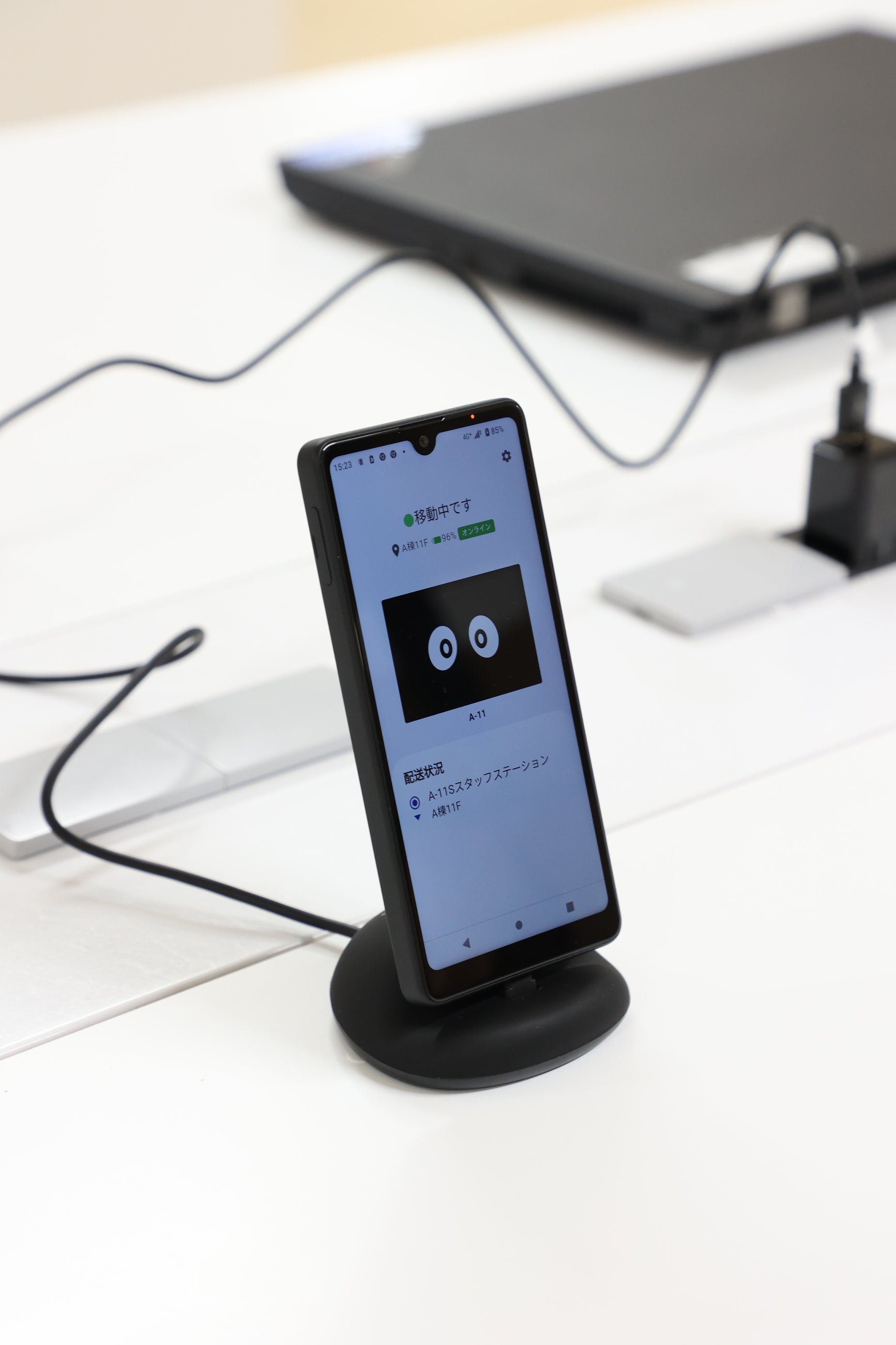 スタッフステーション・薬剤部・検査部に設置されたスマートフォンでFORROを所定の位置に呼び出したり、配送状況を確認したり、到着時の通知を受けたりすることができます。こちらもFORRO本体のタッチパネル操作同様、シンプルなユーザーインターフェースで直観的な操作が可能です。