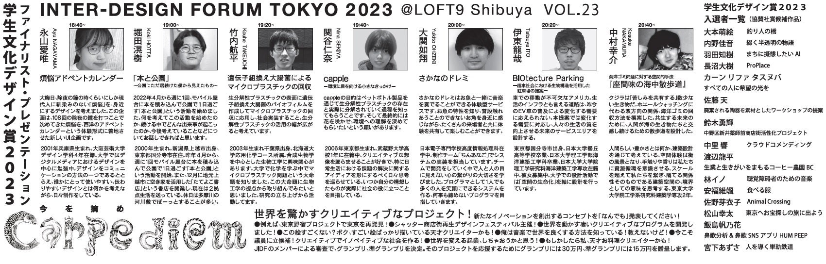 「JIDF学生文化デザイン賞2023」 二次審査進出(入賞)者