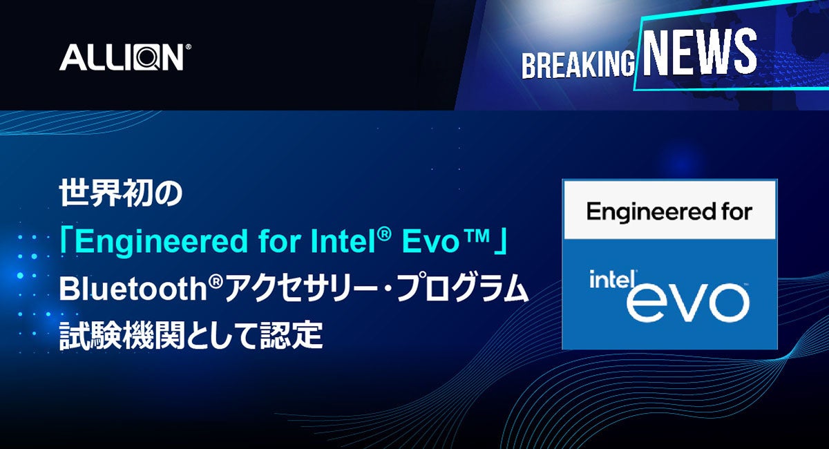 第三者認証試験、品質検証、およびコンサルティングの総合的な第三者検証ソリューションを提供するアリオン株式会社(東京都 品川区、代表取締役社長:中山英明 以下「アリオン」)のグループ本社であるAllion Labs, Inc.(本社:台湾・台北市、CEO:Summer Chien)は、このたび、インテル社より世界初の「Engineered for Intel® Evo™」Bluetooth®アクセサリー・プログラム認証試験機関として認定されました。本認証プログラムにより、Intel® Evo™ 関連製品のパフォーマンスの改善およびエンドユーザー体験の向上を実現することが可能です。