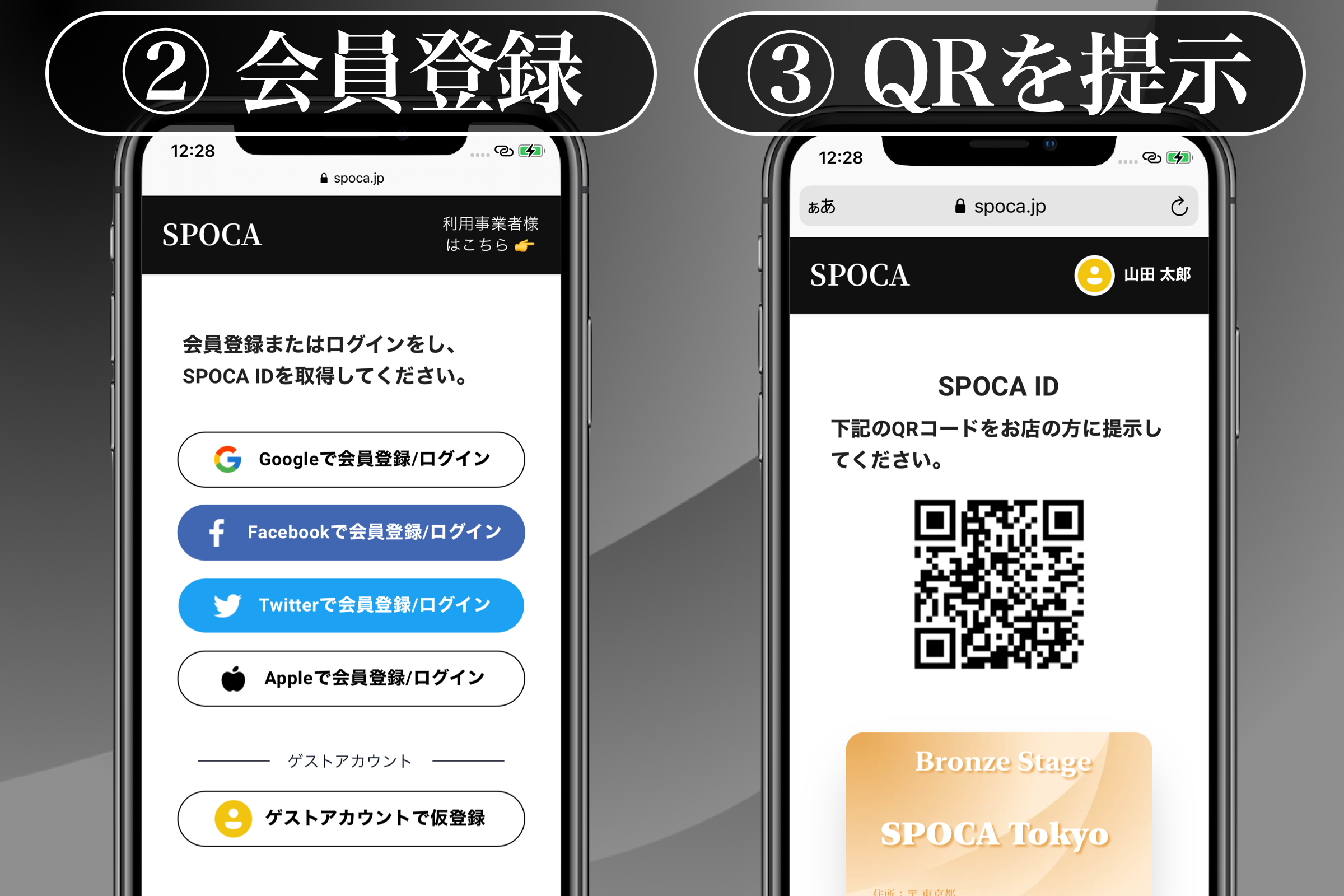 ② 会員登録を実施し、SPOCA ID(QRコード)を発行