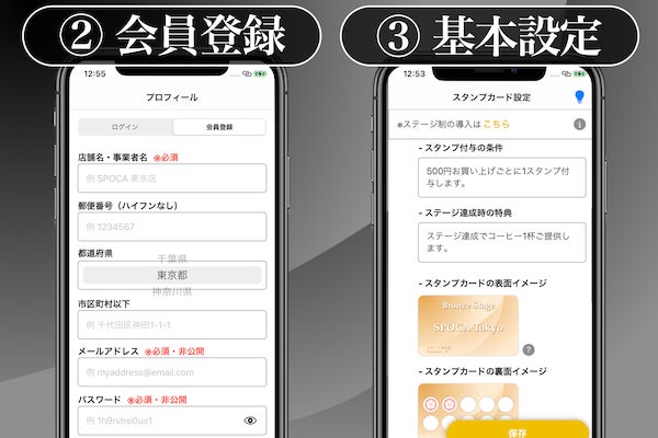 ③スタンプカードの基本設定(スタンプ付与の条件やカードコンプリート時の特典など)を登録