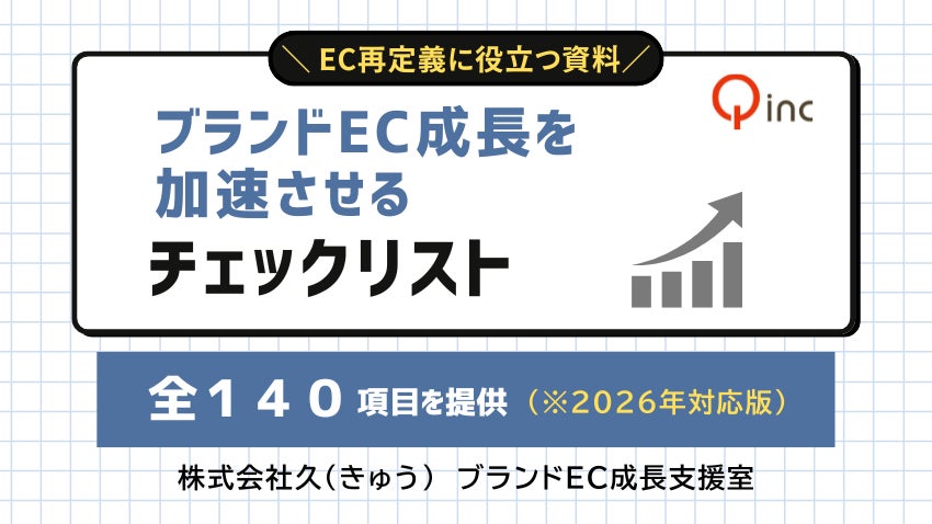 株式会社久(本社:東京都港区、代表取締役:工藤暢久)ブランドEC成長支援室は、ブランド公式ECの成長に役立つ「EC戦略・戦術 140チェック項目」を取りまとめ、EC事業を持つ企業向けに公開・提供を開始しました。本チェックリストは、13年以上にわたる公式ECサイト中心のECマーケティング・総合支援で得たノウハウをもとに、2026年のEC市場環境を見据えてアップデートしたチェック項目です。