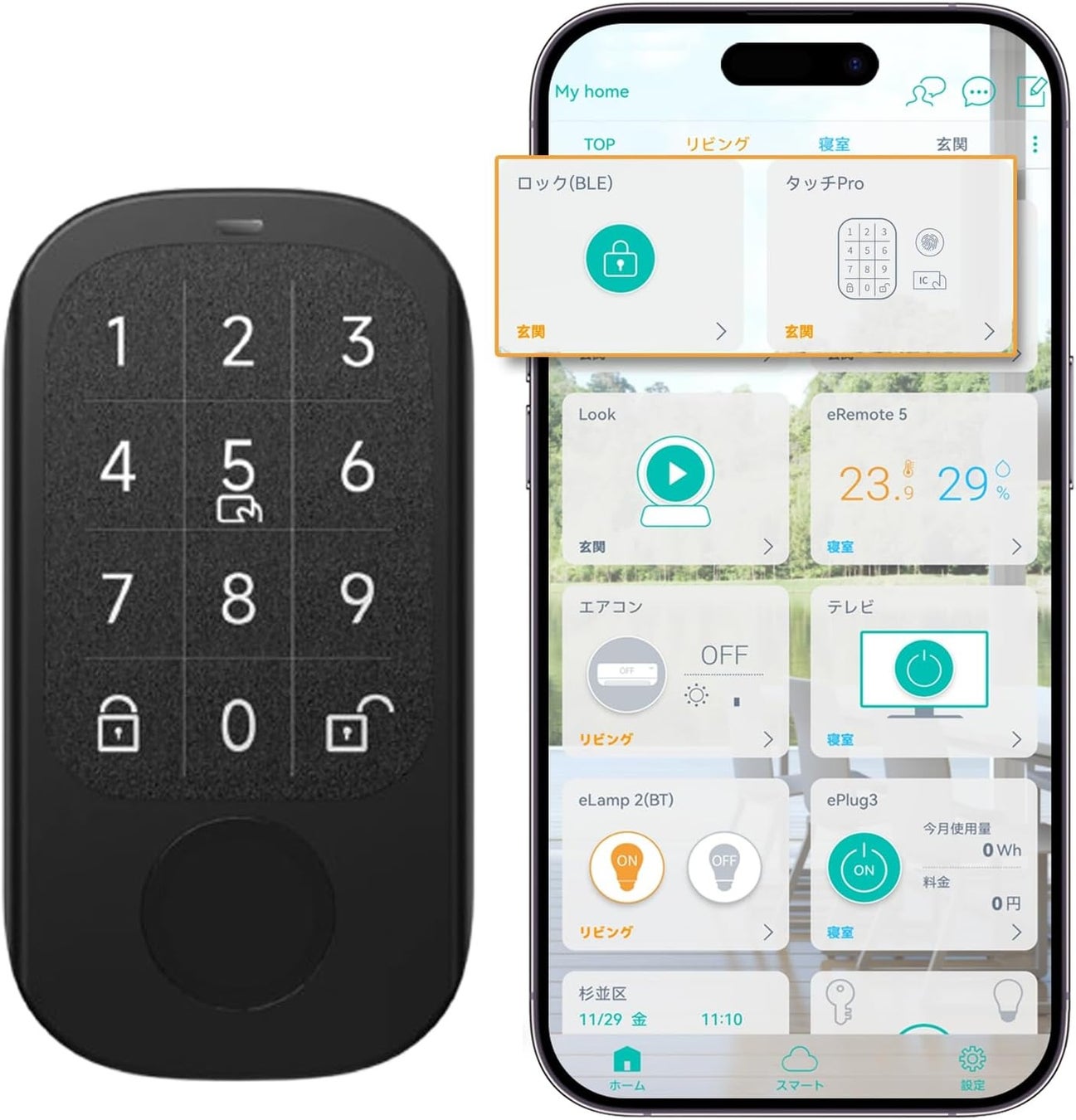 指紋認証:最大100個の指紋を登録可能。家族を始めとした同居人と簡単に共有でき、削除も手軽に行えます。