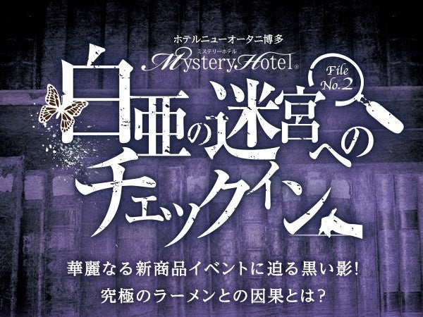 ホテルニューオータニ博多(福岡市中央区渡辺通1-1-2 総支配人:山本 圭介)では、1987年に誕生した日本初の参加型推理イベント「ミステリーナイト®」を手掛けるE-Pin企画とタイアップした宿泊プラン「ミステリーホテル®」の新シリーズを2022年5月20日(金)より販売いたします。2020年11月よりスタートした「白亜の迷宮へのチェックイン」は大ヒットとなり400名を超える多くのお客さまにお楽しみいただきました。お客さまが「探偵」となり、客室やレストランなどホテル全体を舞台に手掛かりを集めていただき、一晩で事件の真相を推理し謎を解き明かす体験型宿泊プラン待望の新シリーズ「白亜の迷宮へのチェックイン File No.2」。ワクワク、ドキドキした夜をホテルニューオータニ博多でお過ごしください。
