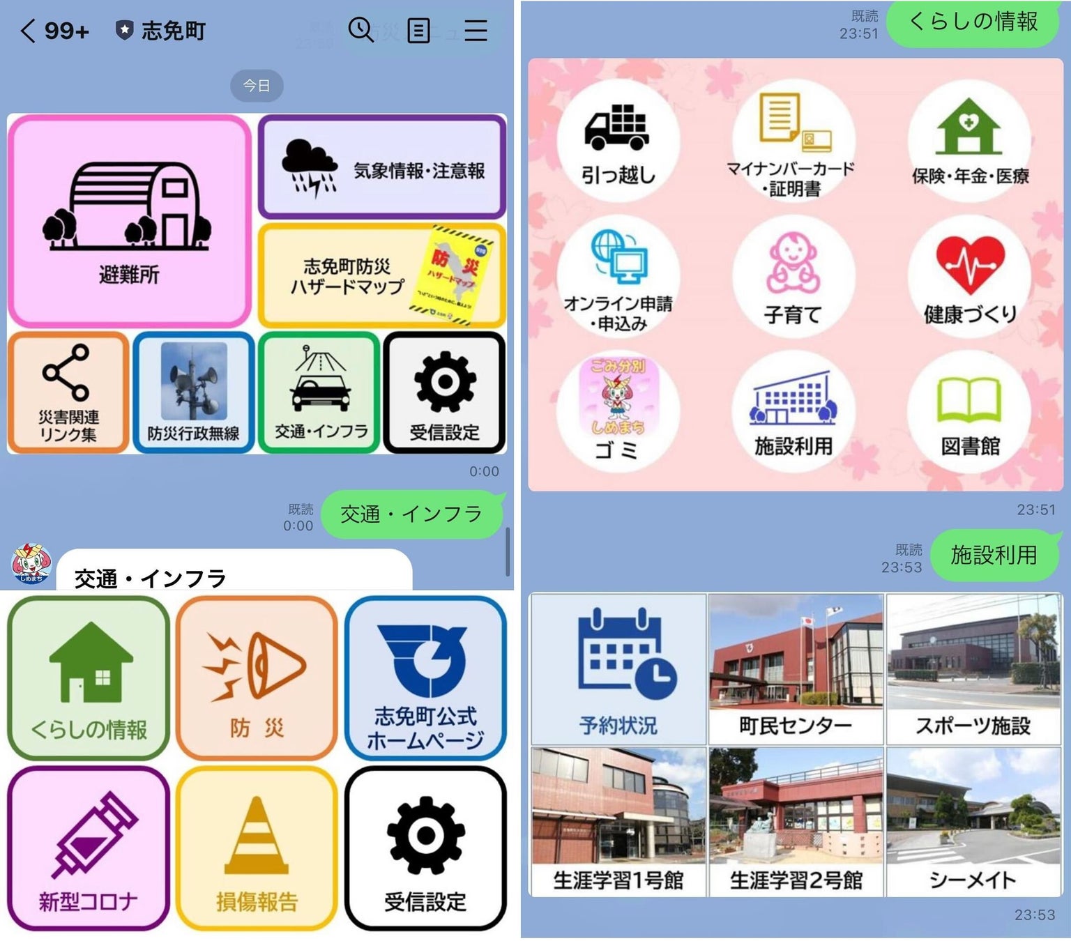 また市民が安全に暮らすための「損傷報告」を通じたコミュニケーション機能や、「新型コロナ情報」や「子育て・教育」、「ごみ」など日常生活に役立つ情報を適切なタイミングで受け取れるセグメント配信などを開始。LINEを通じた便利で役立つサービスの拡充に取り組んでいます。