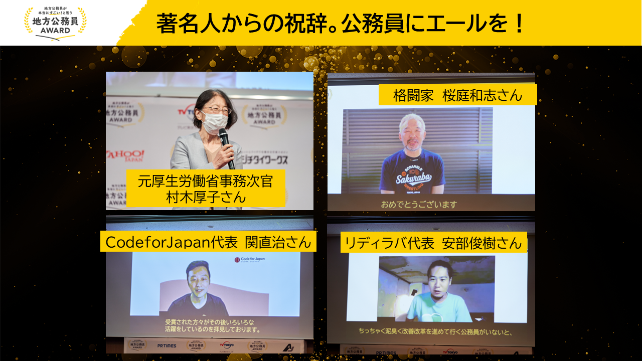 「NECソリューションイノベータ 賞」「PR TIMES賞」「ヤフー賞」「KDDI 賞」「ジチタイワークス 賞」「VOTE FOR 賞」「自治体通信 賞」「ジチタイワークス 賞」等