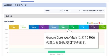 3. Google Core Web Vitalsの指標など、10種類の異なる指標が測定できます。