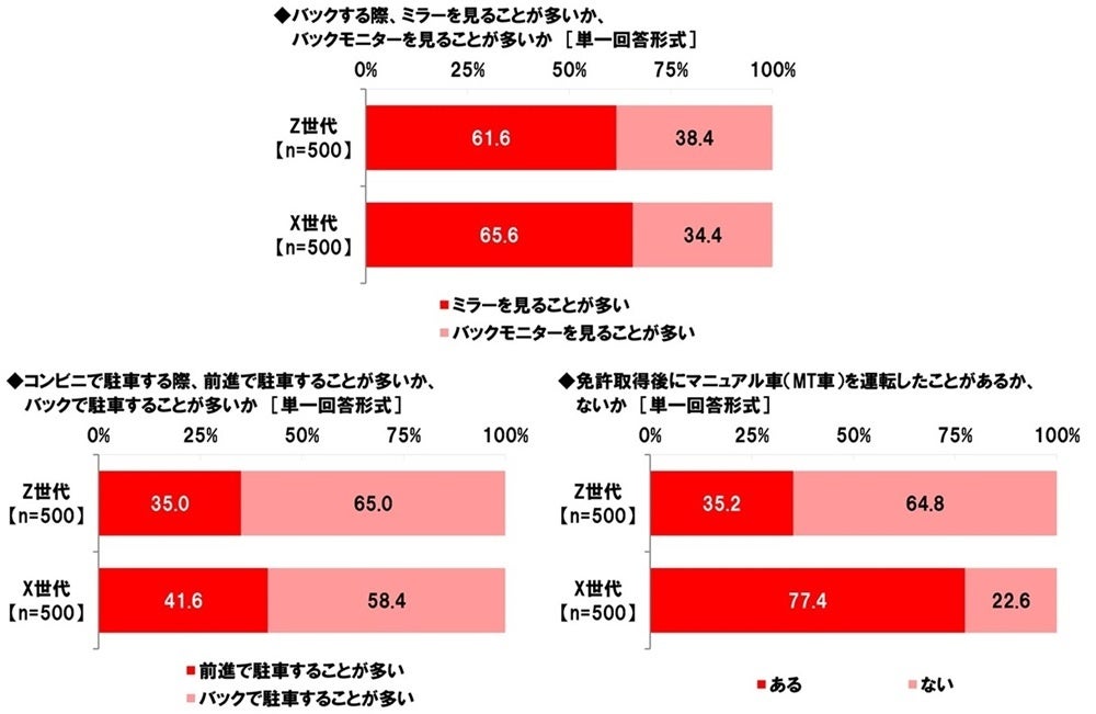 「免許取得後にマニュアル車を運転した経験がある」 Z世代の35%、X世代の77%