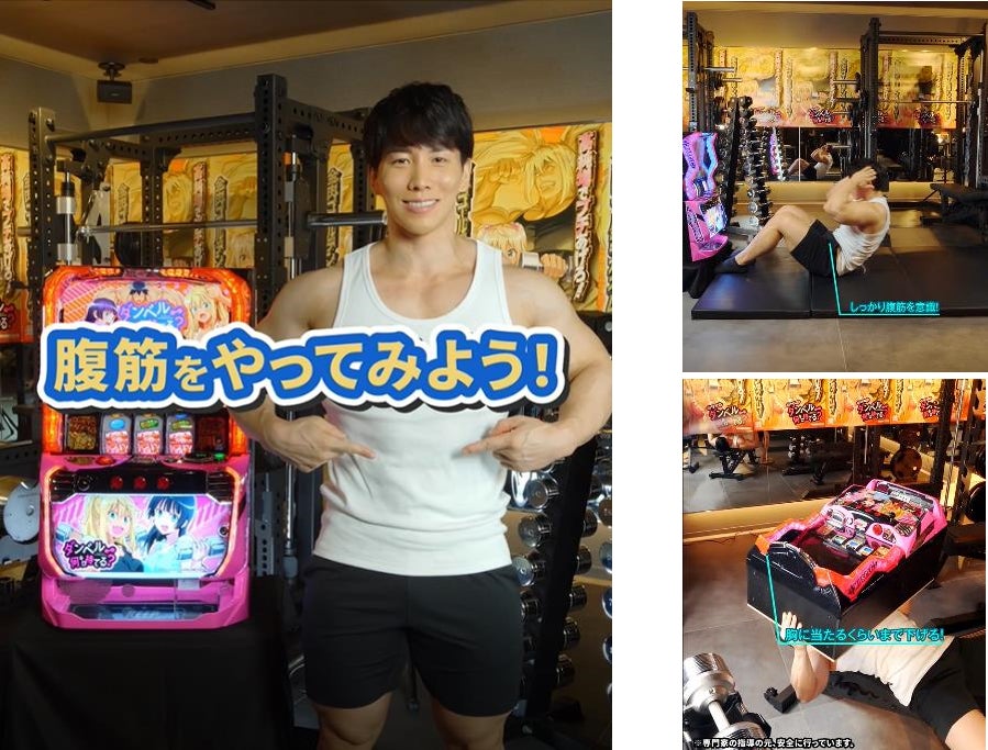 レバーやPUSHボタンで上腕を鍛える、パチスロ台で足を抑えて腹筋を鍛える、パチスロ台を持ち上げて胸筋を鍛える、など「Lパチスロ ダンベル何キロ持てる?」導入記念にふさわしいスペシャル動画をぜひお楽しみください。