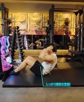 ①公式アンバサダーの筋肉タレント横川 尚隆さんがパチスロ台で筋トレ方法をレクチャー