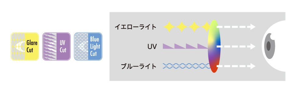 眼球内のタンパク質を傷つけ視力低下や白内障を誘発する紫外線。眼に見える光の中で紫外線に次ぐ強い光の種類であるブルーライトは網膜を収縮させ、眼の疲労の原因に。