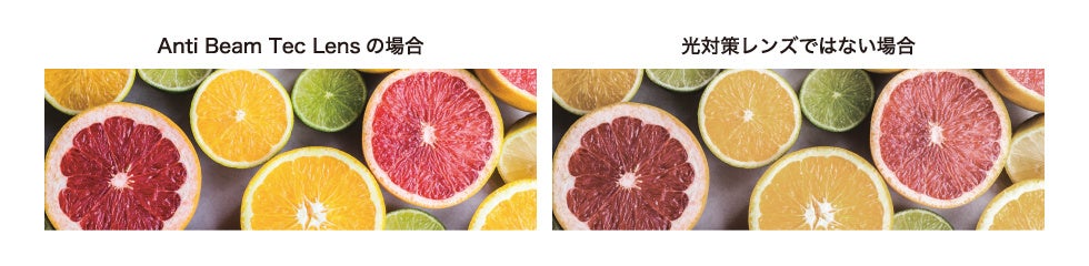 アンチビームテックレンズは視覚にとって余計な光を防ぐことで、眼に見える色をあざやかにする効果もあります。光を防ぐだけでなく、色彩豊かな視覚を確保します。