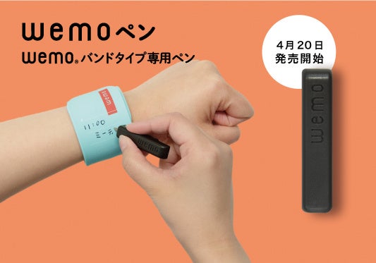 ボールペンで書いて消しゴムで消せるウェアラブルメモwemo®から、初の純正オプション品、バンドとの使用に便利な「wemo®ペン」を4月20日(水)発売!